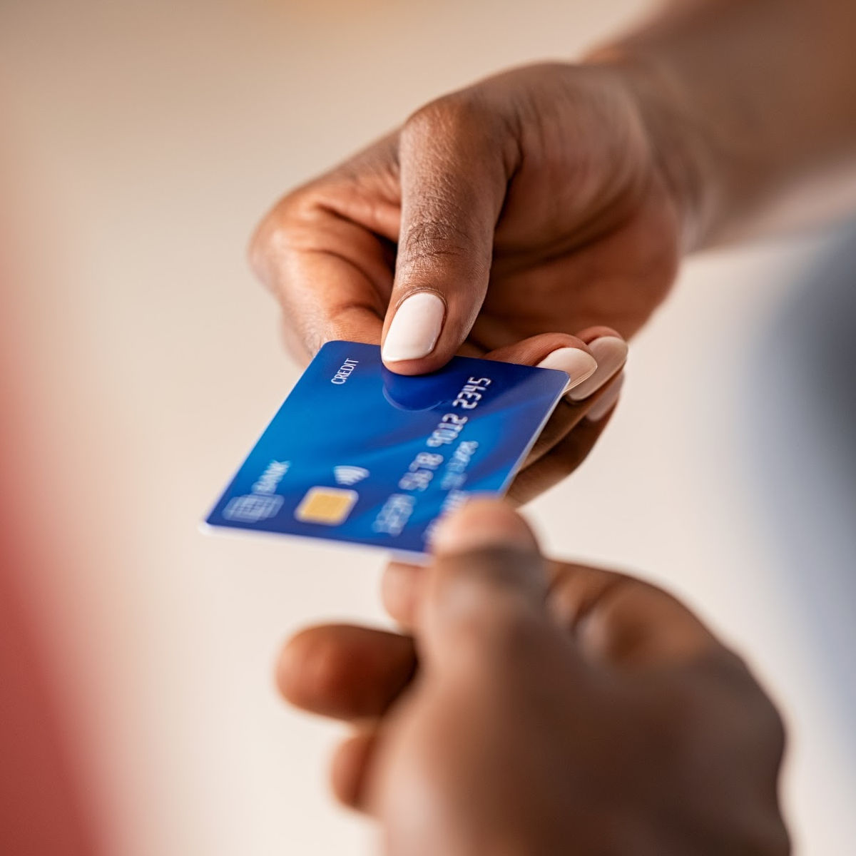 Image of one hand giving another their card after reviewing cash advance credit card options